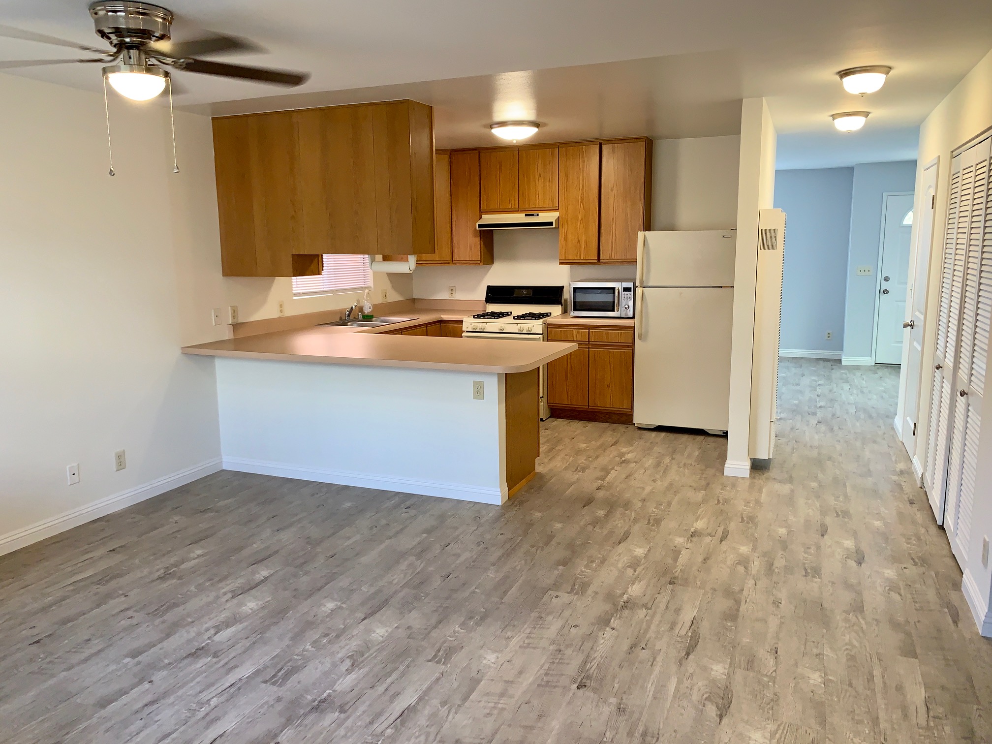 This downtown Long Beach property features 3 large bedrooms, 2. 5 bathrooms (2 full baths and 1 half bath), an oversized 2 car garage, 3 additional parking spaces, a fully fenced front yard, a fully enclosed backyard, inside laundry, new flooring throughout, newly painted interior, master suite with bay windows and walk-in closet, ceiling fans in almost every room, a great house built in 1996.